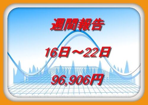 おはようございます!ぼ~ぬん(@beaune1011)です。 ブログを読んで頂きありがとうございますm(__)m 先週(16日~22日)の収支報告となります。 16日から22日で得た利益は96,906円でした。 以下、詳細となります。